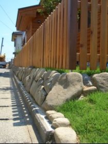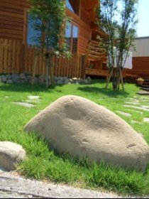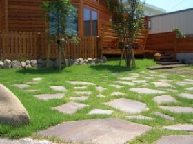 敷地コーナーに大き目の玉石を配しました