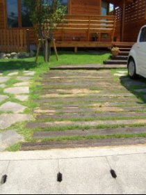 アプローチは枕木です