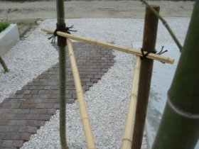 6m程度の孟宗竹をジャワ鉄平石のアプローチの両脇に配しました。