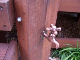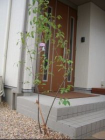 ウリン立水栓を作り、足元には伊勢砂利をその脇にはヤブランをスッキリ並べてました