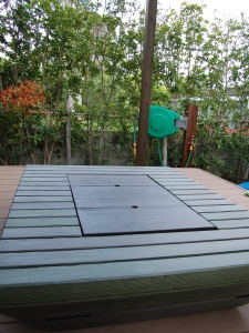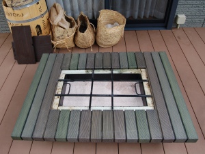 囲炉裏は、蓋をすれば、テーブルとして活躍します。総重量が150kg程度あり、強風で飛ばされる心配もありません。