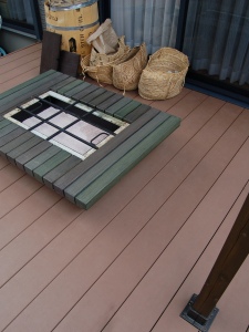 男の子3兄弟が元気に遊べるように大き目のデッキです。