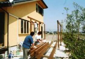 モダン和風のお住まいにぴったりの木製カーポートです。