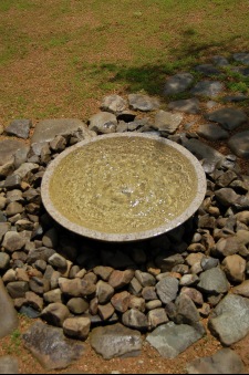 吉野川砂岩の目地からは、クローバーの芽が出始めました。