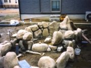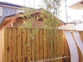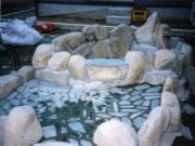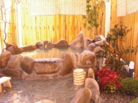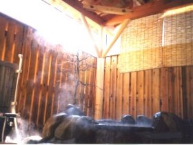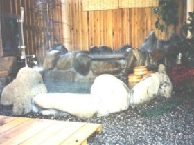 旅館の離れの露天風呂をイメージして造りました。稀少な吉野川玉石を使用し、浴槽を洗い場は青石を使用して和風情緒たっぷりに仕上げました。前庭から雰囲気を出るように、工夫いたしました。