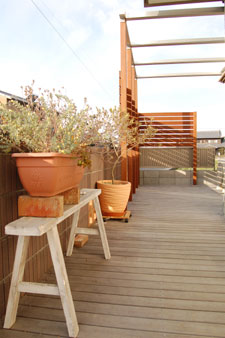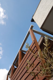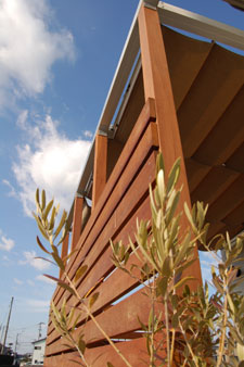 涼しげなアルミと天然木の組合せはとても新鮮。 |