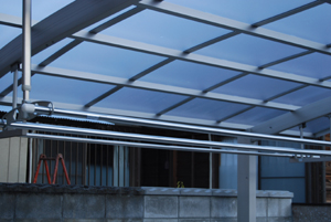 カーポート材で作った物干しにはたくさんの洗濯物が干せます。
