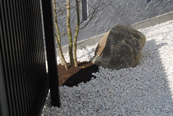 モミジの横に石を置き